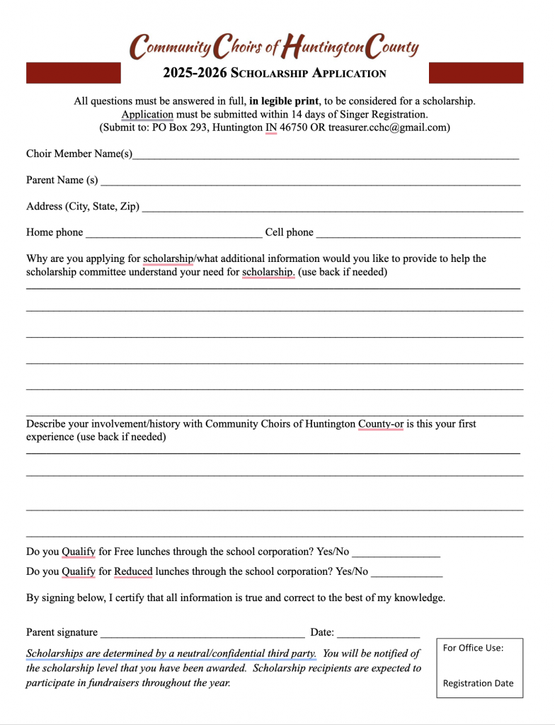 • Rehearsals will start on September 8, 2025 downstairs in the Merillatt at Huntington University.