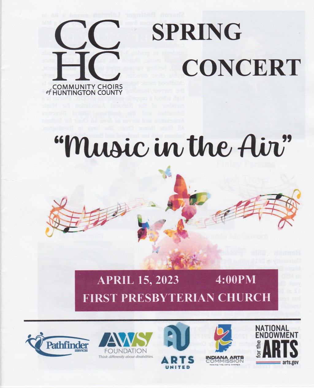 Spring Concert 2023 John Gardner Posted on April 25, 2023 Posted in Concert Tagged with 2023, CCHC, Childrens Choirs of Huntington County, Concert, Spring